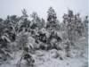 gleich in den tief verschneiten Wald. Der Wind