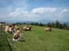 auf der Ecklbaueralm die ersten weidenden Kühe.